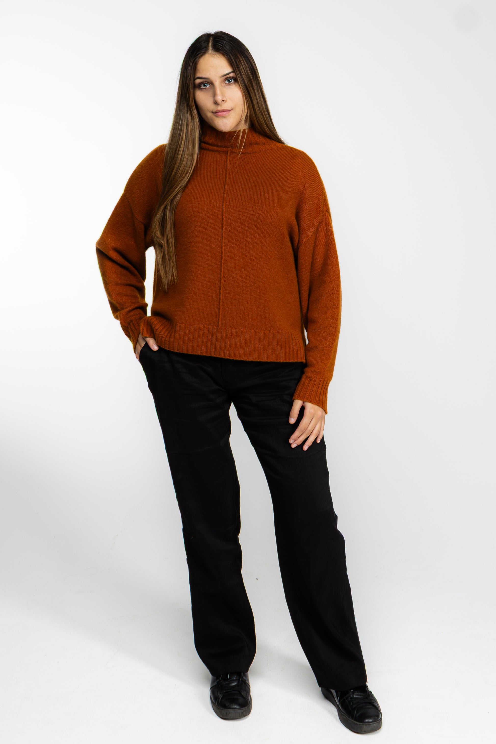 Der Lumé High Deep Copper vereint skulpturales Design mit dezenter Eleganz. Gefertigt aus feinem, weichem Strickmaterial, bietet er außergewöhnliche Wärme und höchsten Tragekomfort – das kuscheligste Stück der Lumé-Kollektion.