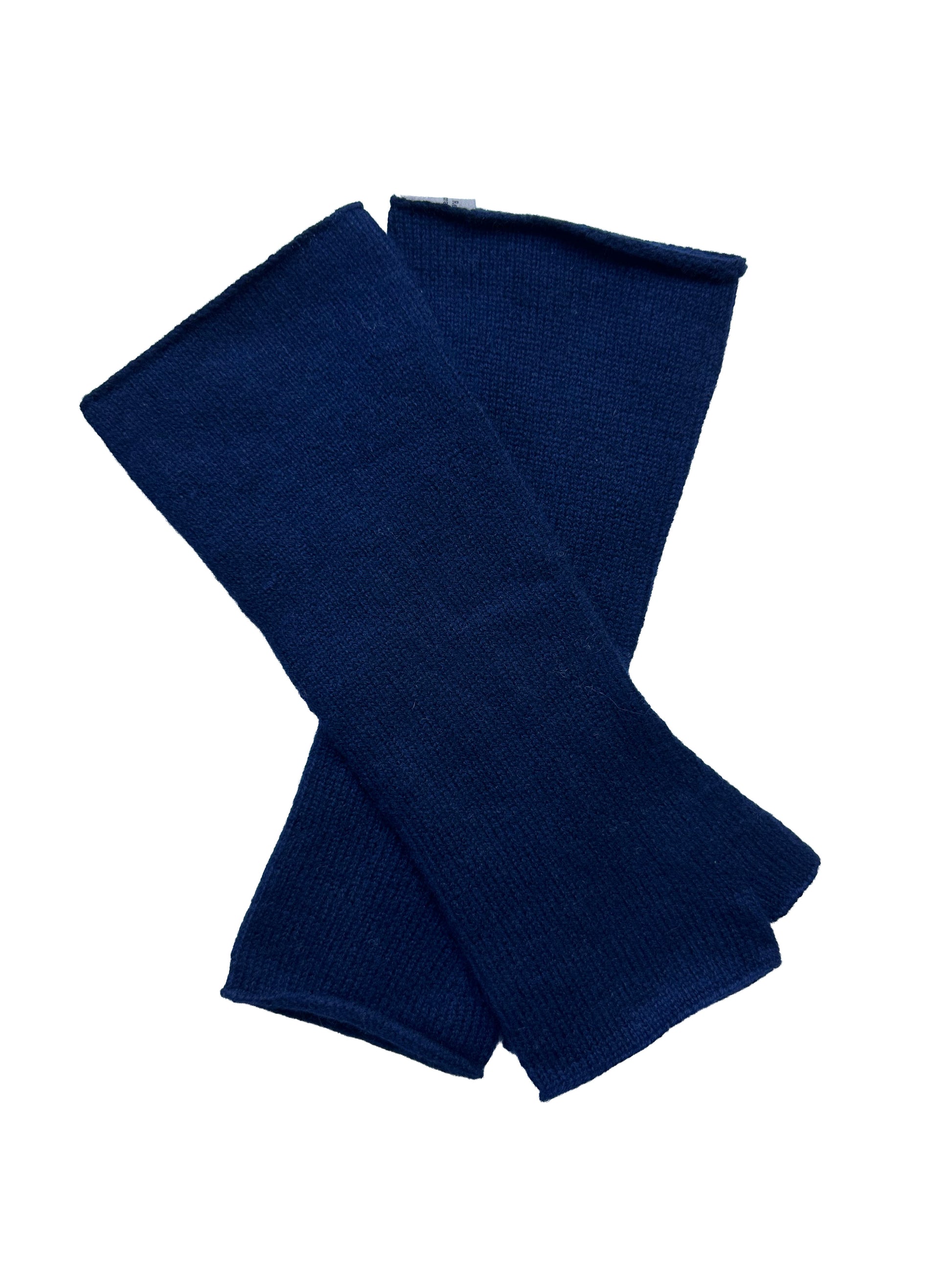 Die langen, fingerlosen Handschuhe Ox Haven in Marineblau verleihen der Wintergarderobe eine raffinierte Note von Lässigkeit und Modernität. Gefertigt aus 100 % reinem Kaschmir, bieten sie außergewöhnliche Weichheit und wärmende Isolierung, während die verlängerte Silhouette eine elegante Linie an Handgelenk und Unterarm erzeugt.