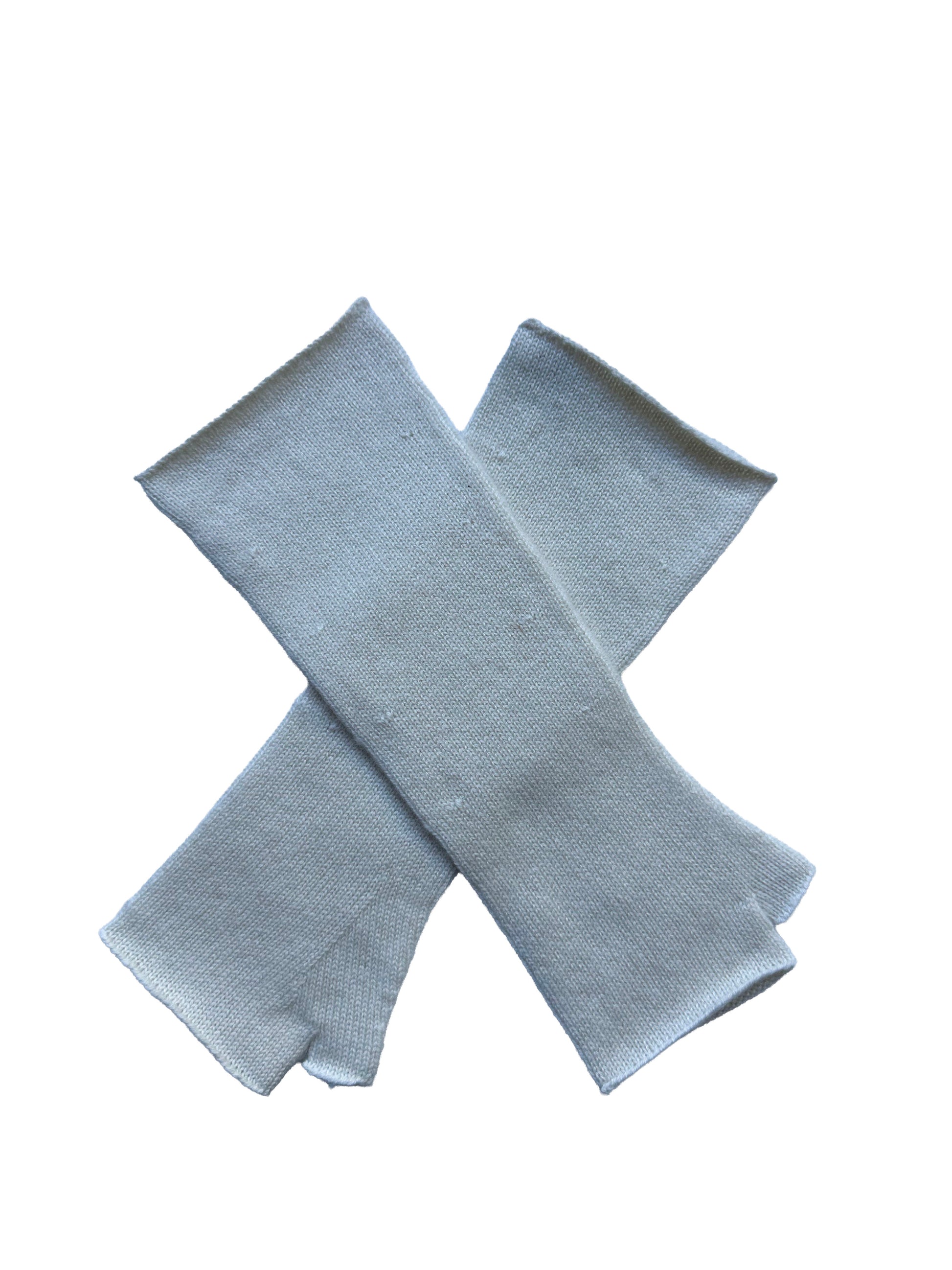 Die langen, cremefarbenen Fingerlosen Handschuhe Ox Haven in Creme verleihen der Wintergarderobe einen Hauch von Eleganz und Modernität. Gefertigt aus 100 % reinem Kaschmir, bieten sie außergewöhnliche Weichheit und wärmende Isolierung, während die verlängerte Silhouette eine schlanke, elegante Linie an Handgelenk und Unterarm erzeugt.